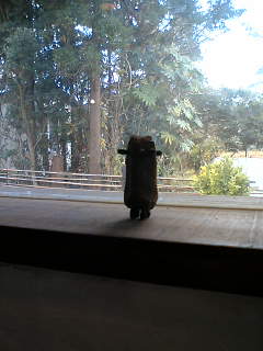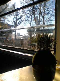 ピンとした外気に顔をしかめる私達をよそに、アカマツの苔玉が窓辺の日差しを独り占めデス