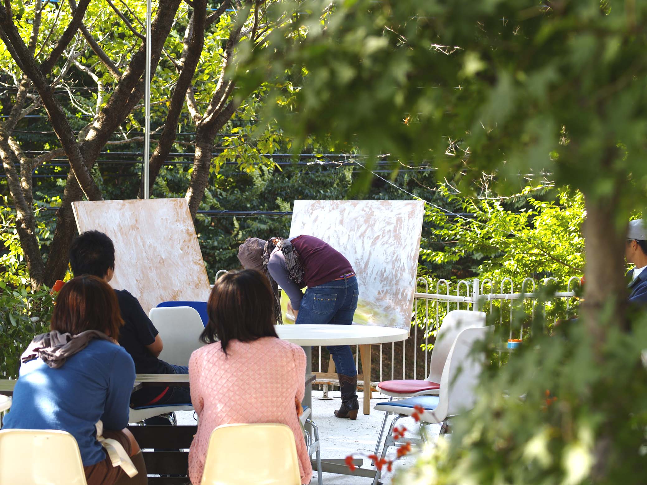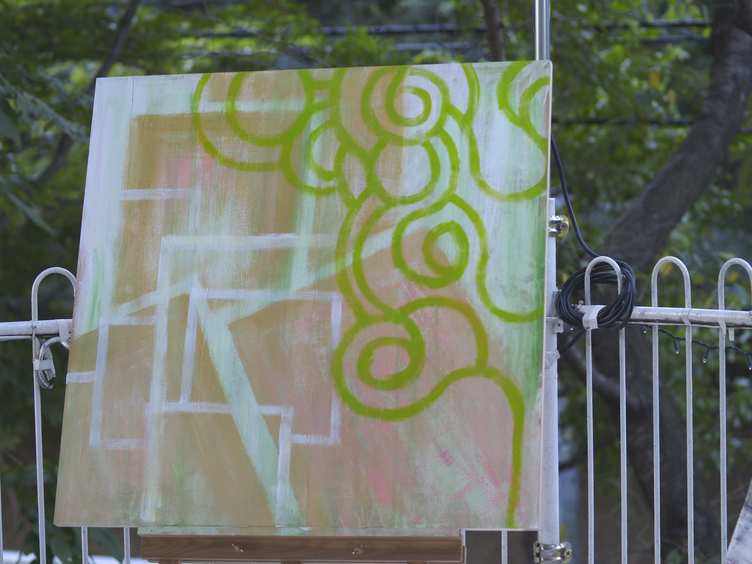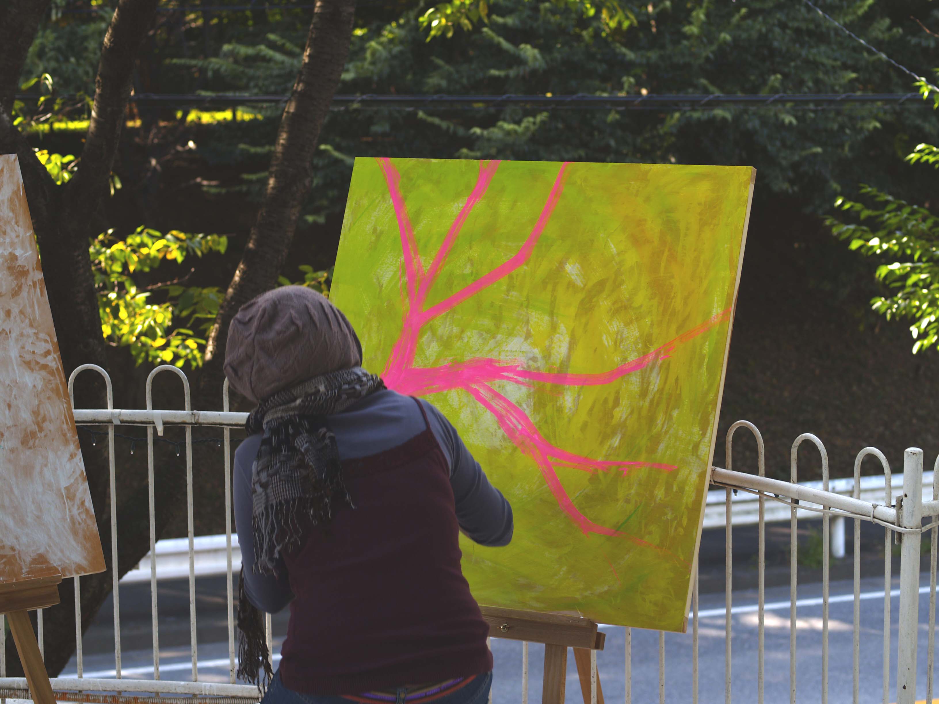 初めて見る「Live Painting」。台風もそれ、明るい日差しの中、始まりました。