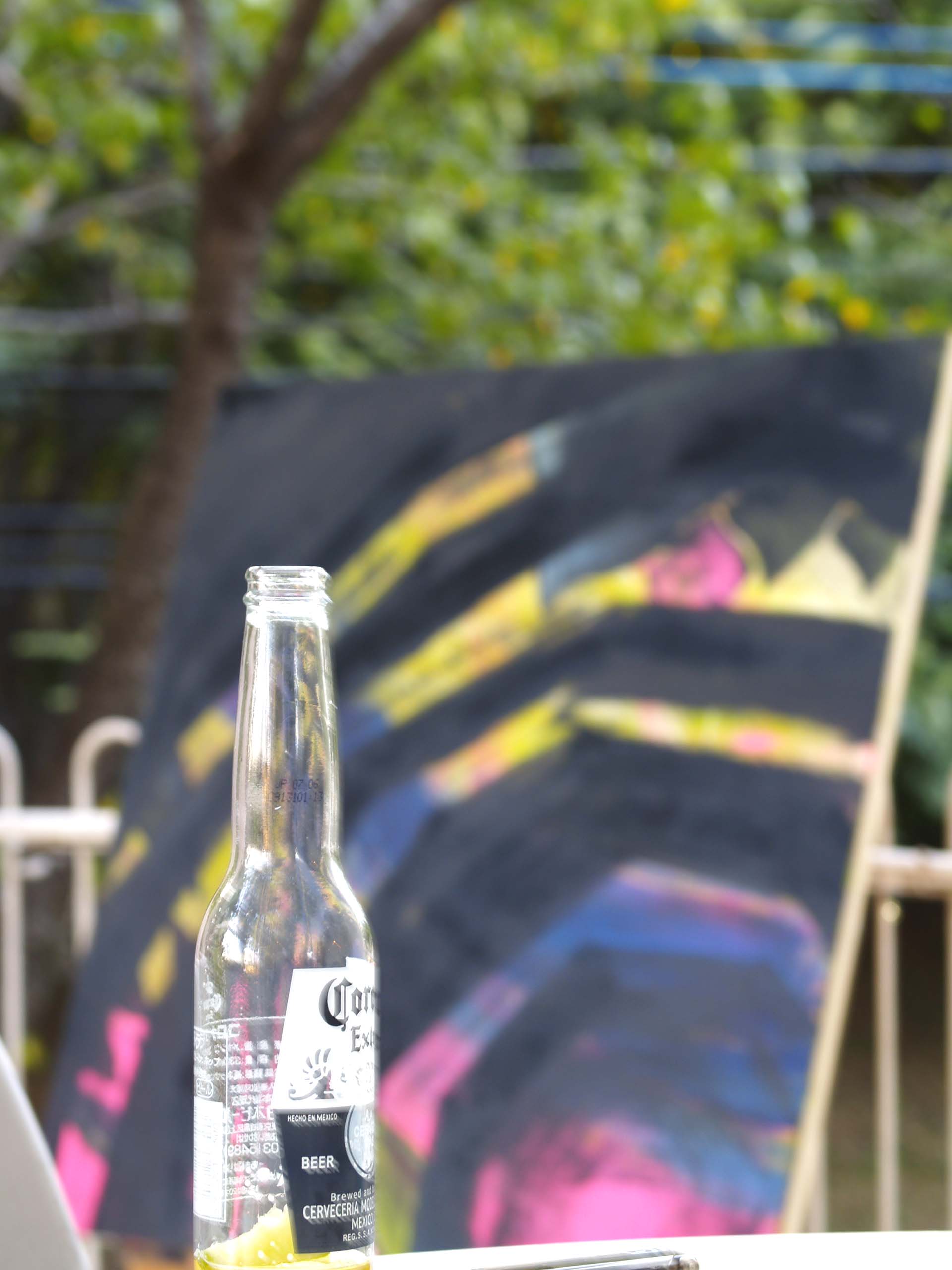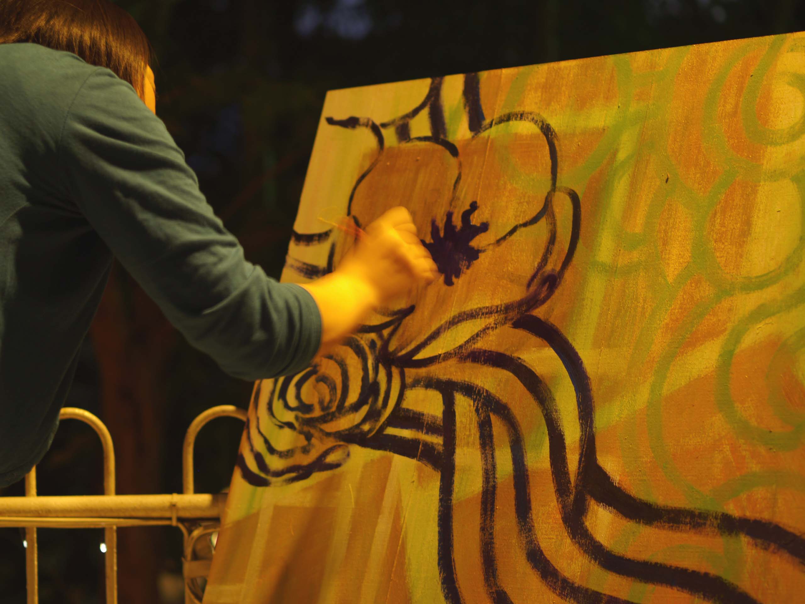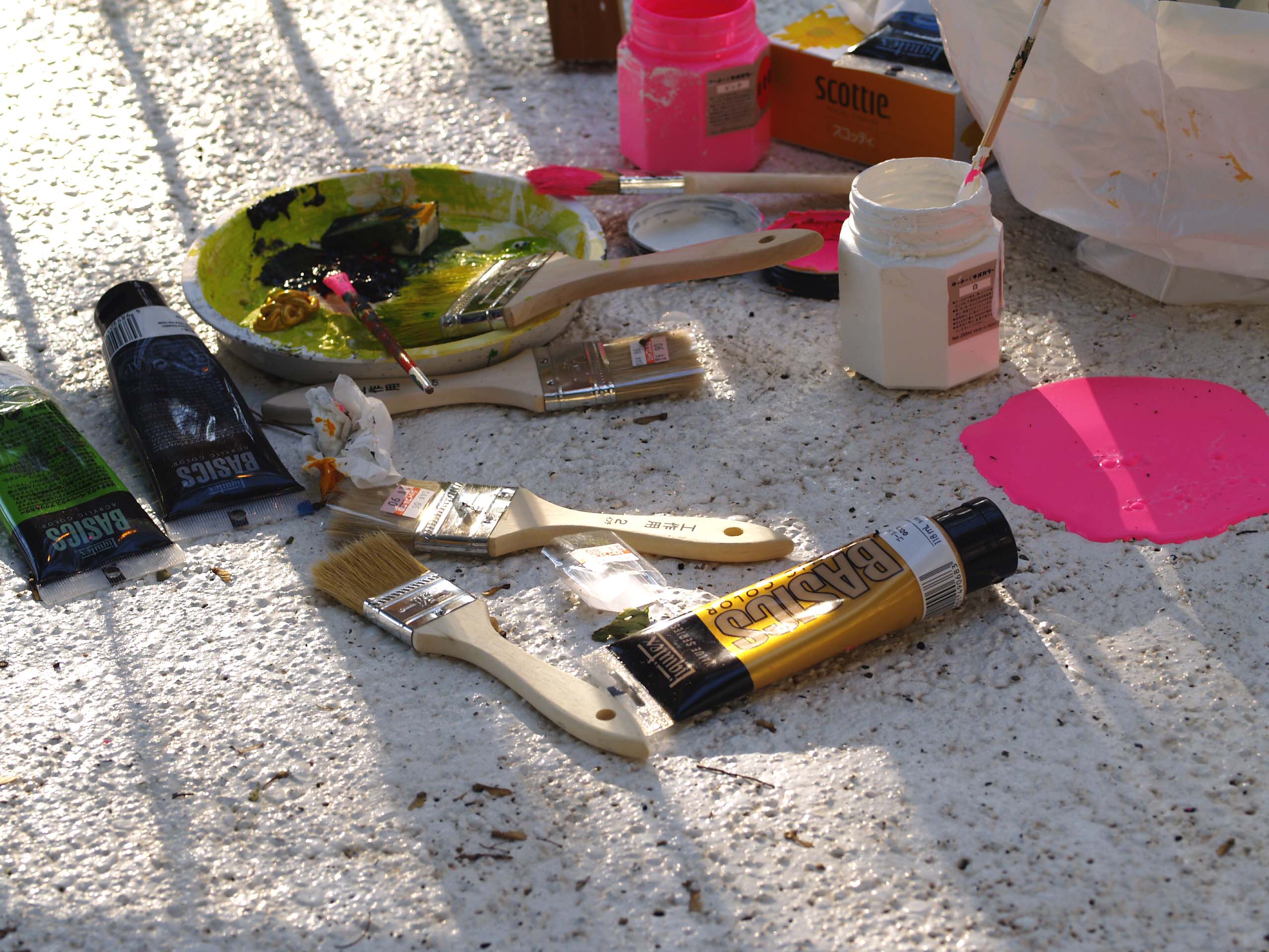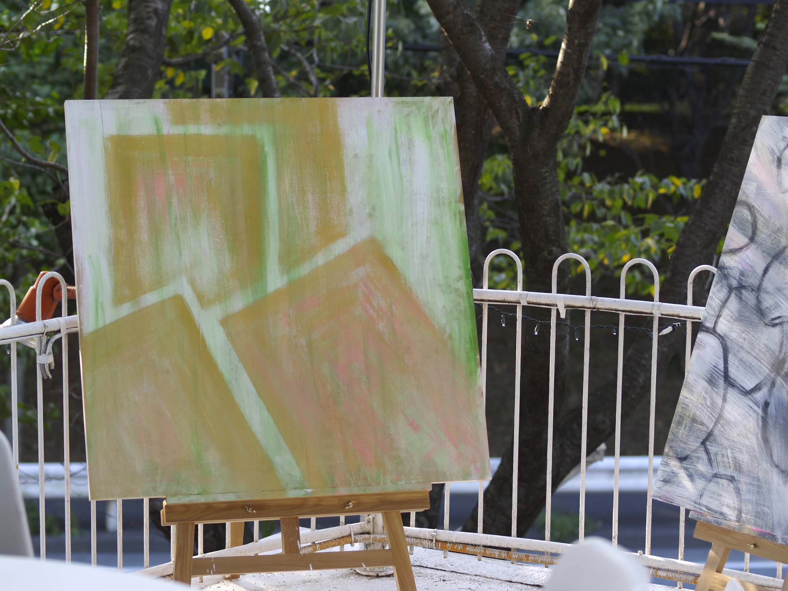 初めて見る「Live Painting」。台風もそれ、明るい日差しの中、始まりました。