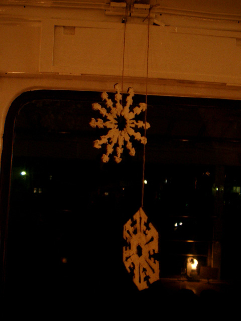 先月からトレカフェの車内にぶらさがっている雪の結晶。