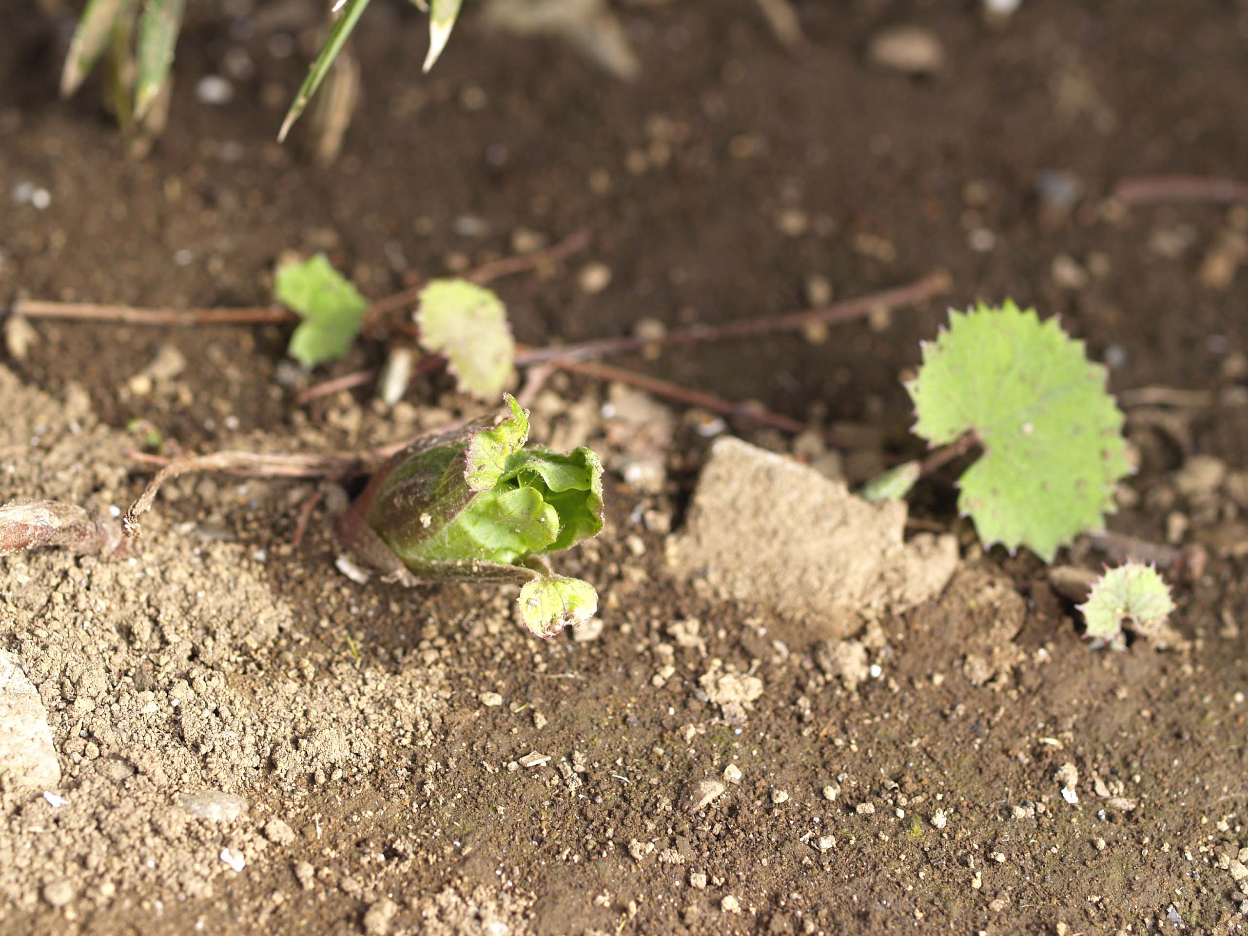 落ち葉を少しよけてみると、そこにはふきのとう。