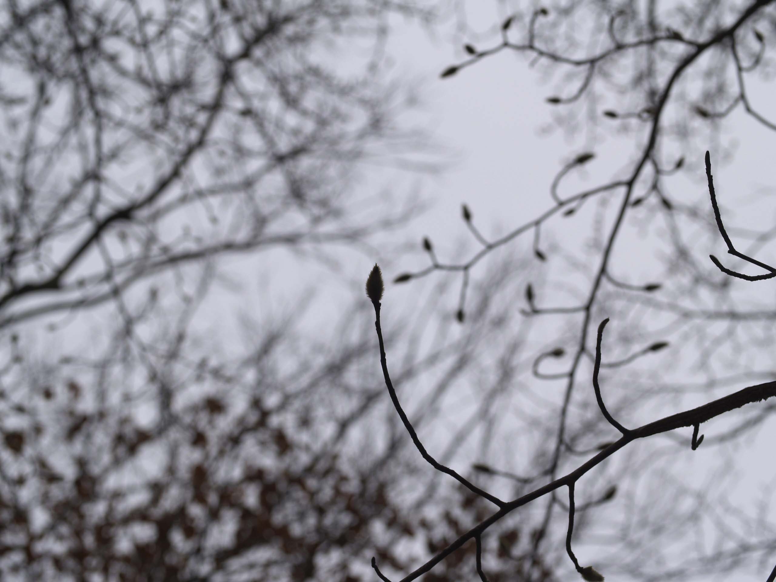 ぷくっぷくっと、枝の先に白い綿帽子。