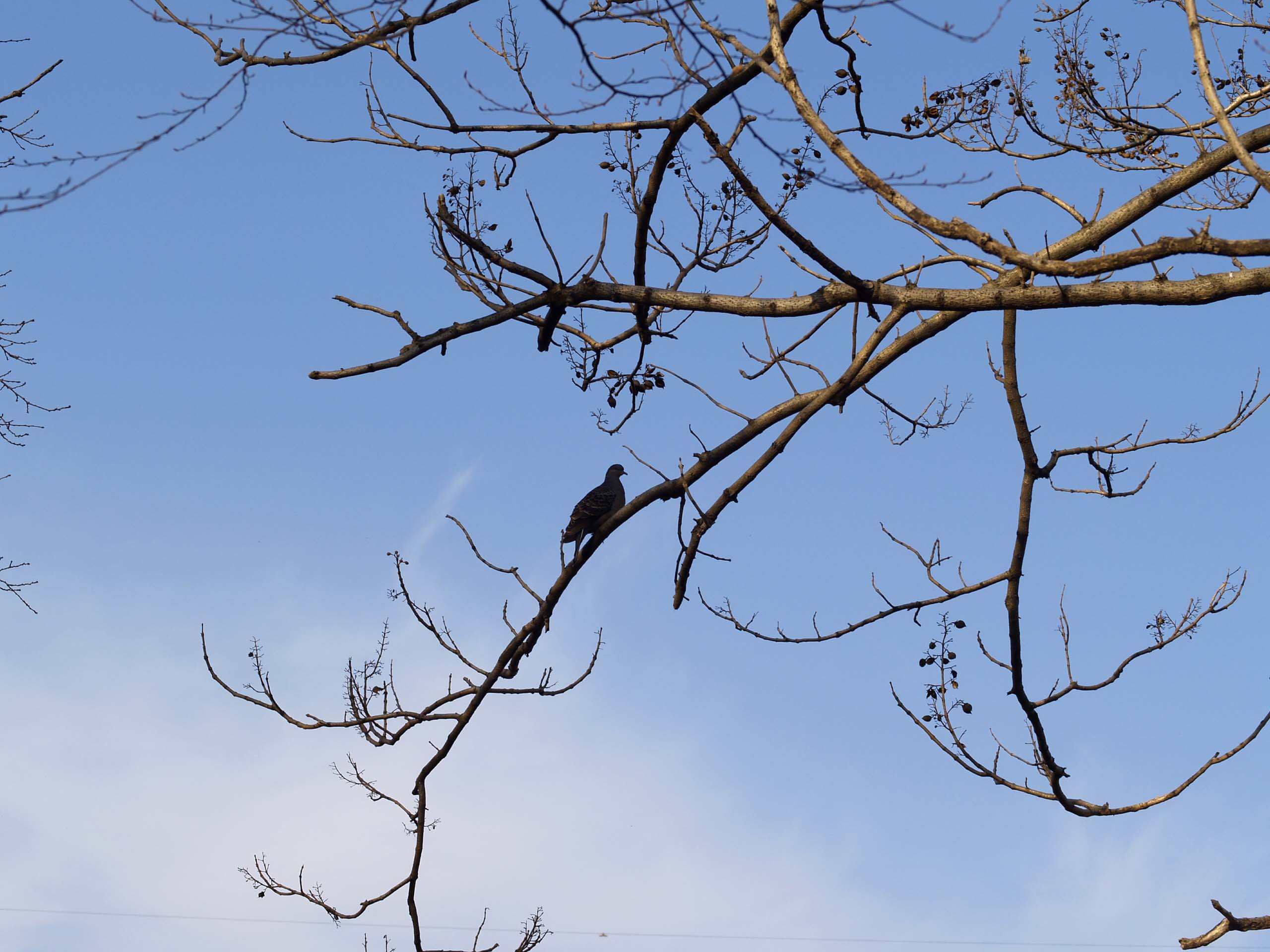 裏庭の桐の木では、鳥がひと休み。ちょっと大きめ、なんていう鳥でしょう?