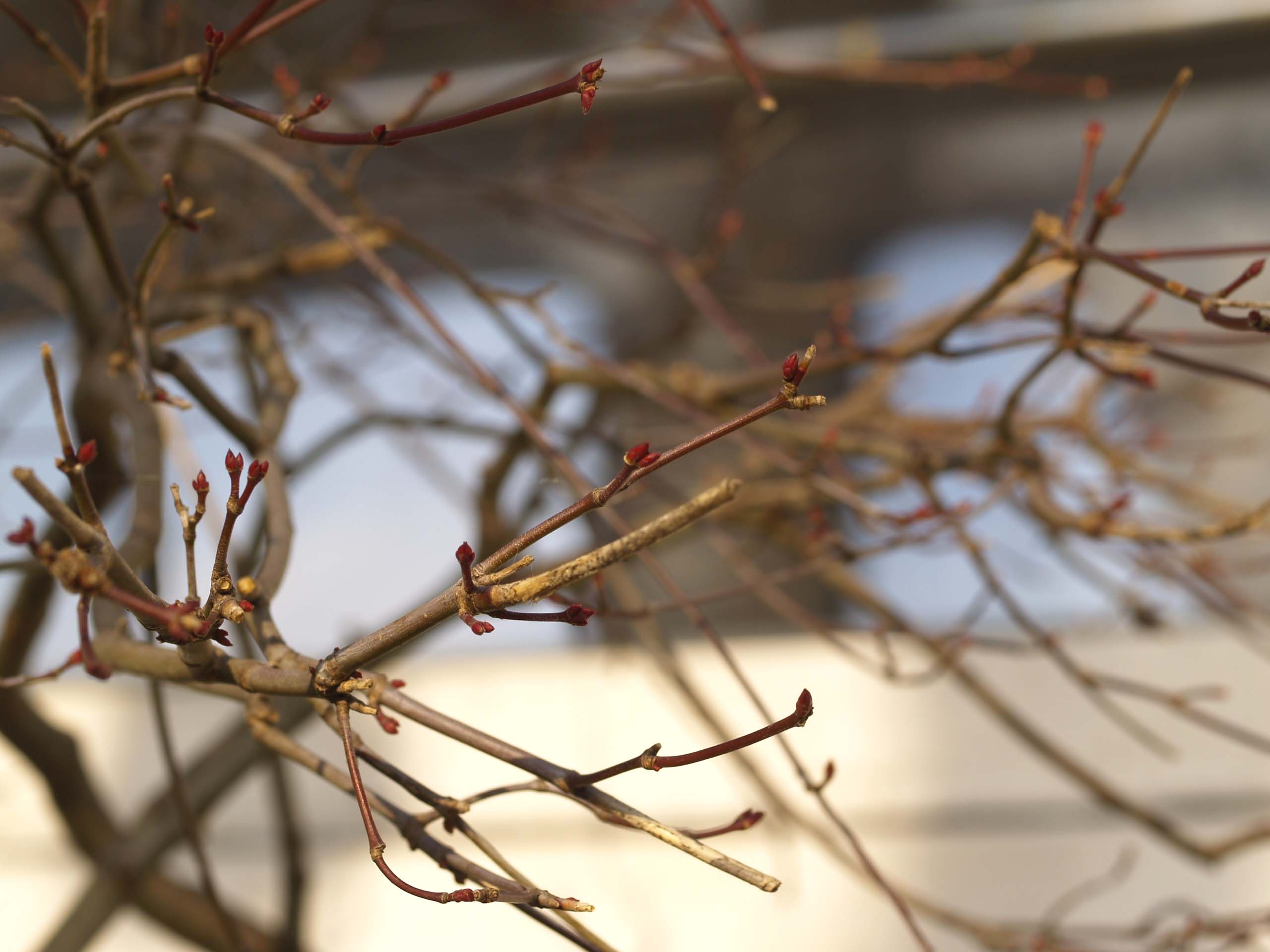 もみじの枝の新芽は、だんだん、ぷっくりしてきました。