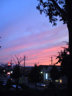 今日の夕焼けはぼんやり。曇ってるせいか、空全体がやんわりピンク。