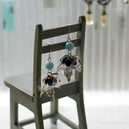 シックな色合いのシルバーリーフのピアスが欲しくて アメジストとアンティークビーズで作ってみました。