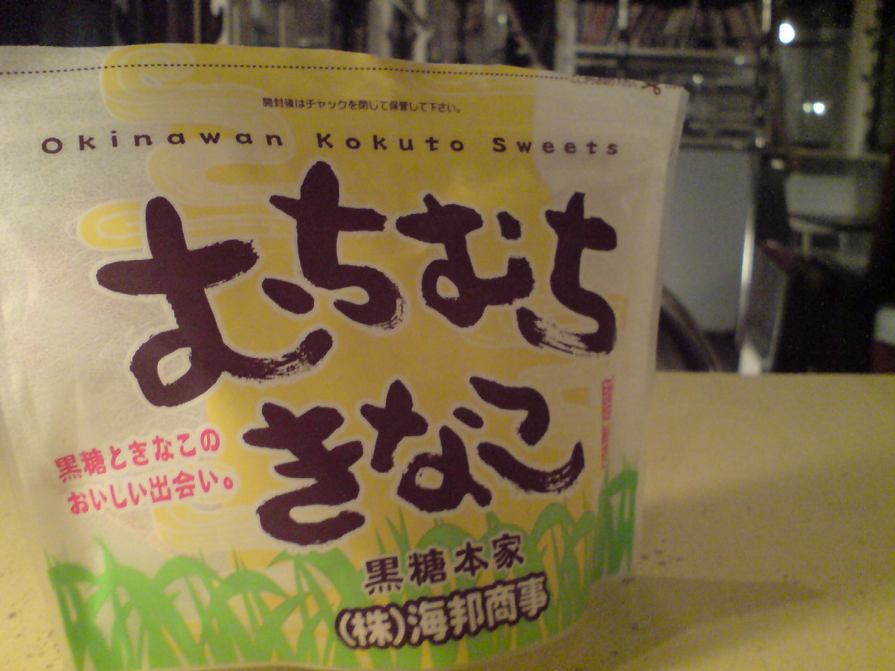 ちょっと食感のソフトな黒糖にきなこがまぶしてあるお菓子。