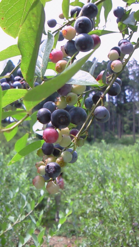 周りの竹林を見ながら山を少し登り、空が広がると一面にブルーベリーがなってる!なってる!(o^o^o)