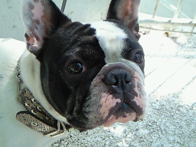 おめめがクリクリで耳をピーンと立てているフレンチブルドックの「小次郎くん」いっつもご主人さんと仲良しでトレカフェに遊びに来てくれます!