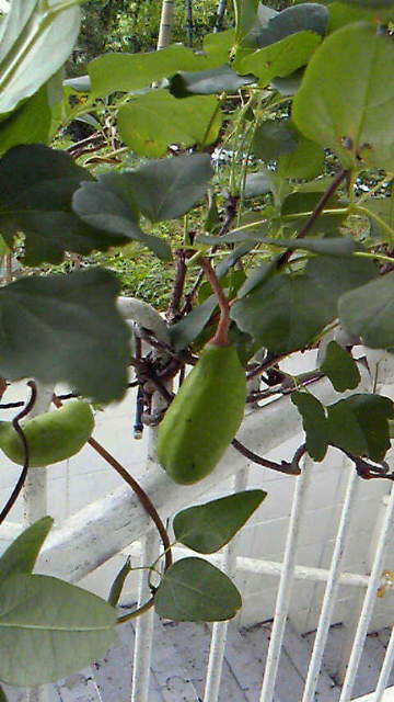 そうそう、あけびも着々と大きくなってますよ(o^-^o)テラスの柵に絡まってる葉っぱをよ〜く見ると、あちらこちらに双子や三つ子のあけびが見つかります。