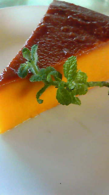 かぼちゃのプリンのような卵っぽい感じではなく、かぼちゃのケーキのようにしっかりと焼き上げてる訳でもなく、この絶妙な食感は(笑)何と呼んだらいいのかと迷いに迷って「かぼちゃのキャラメリゼ」にしたのを覚えてます。余計わかりずらくなってしまい(汗)、今でも、毎回、お客様に説明してます(^_^;)。