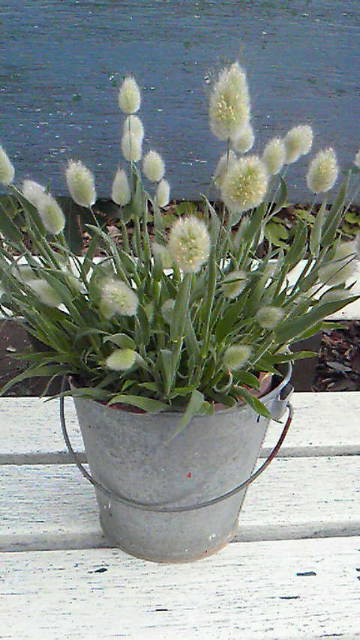 おとといの報告より、ちょっと進んで(笑)二分咲きです!写真では遠すぎて写らないので、この写真はテラスのあけびてす。こちらも花が咲き始めて、テラスが一気に春モードです!