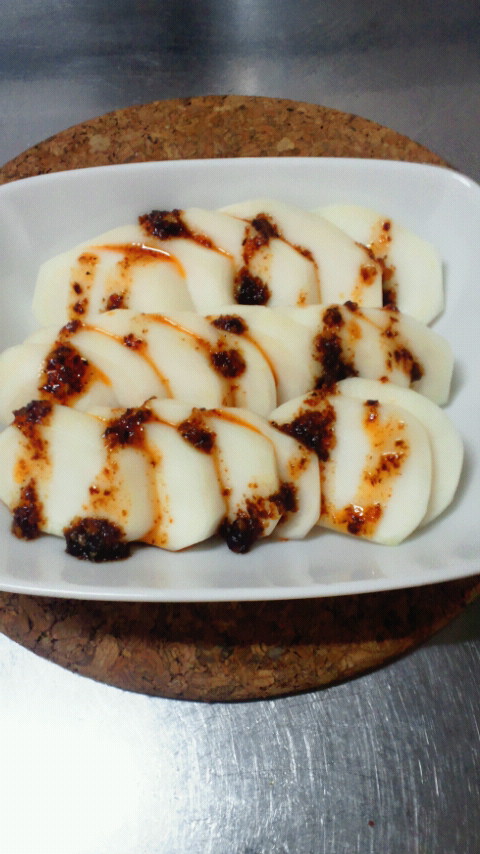 こんばんは。SPICYOILを今日は、自家製のぬか漬けで漬けた「カブ」にかけて食べてみました。