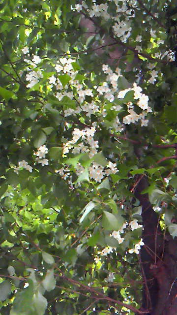 写真はトレカフェの駐車場にあるエゴノキのお花です。風にのってたくさん降ってきています。小さくてかわいいお花です。