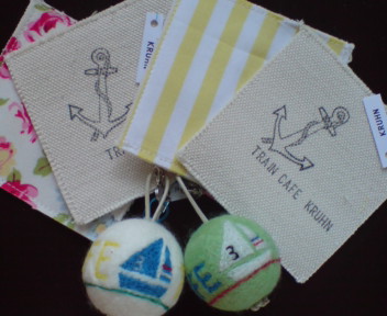 実は…、ブログにアップする前に携帯ストラップが売れてしまい、ただ今、夏らしいヨット柄2色となっております。