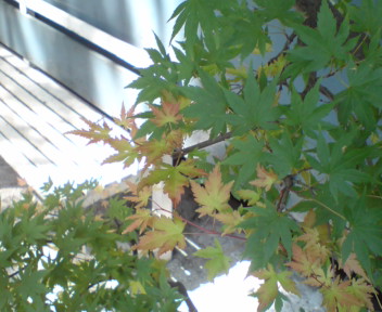 ところで電車脇のもみじ、葉っぱの色に異変が・・・。