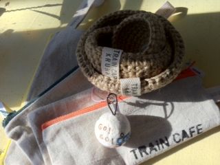 今回は携帯ストラップと、ジュートのかご、ポーチを作って頂きました。