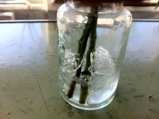 今朝、花瓶のお水、凍ってました。