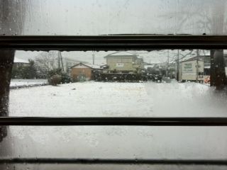 10時くらいから降り始めた雪、けっこう積もってる〜?トレカフェの裏庭は草むらだから積もりやすいんです。