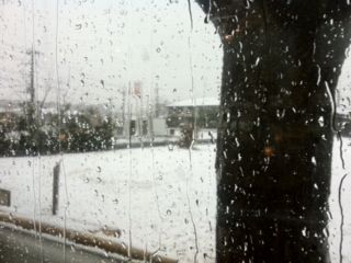 道路はビシャビシャして、積もってないみたい。午後には雨に変わるのかな。