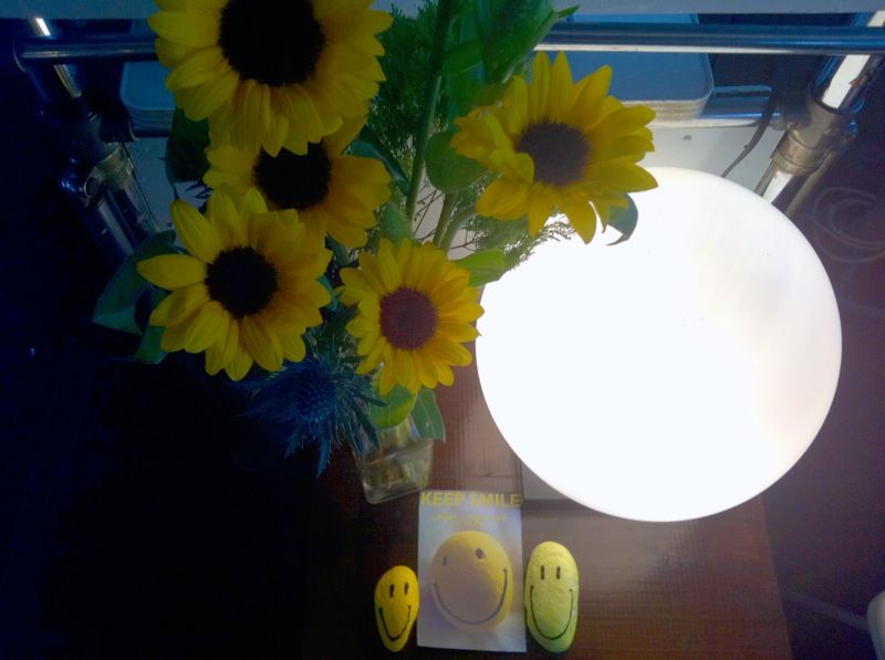 実は今回の個展、トレカフェに飾ってあるニコチャンマークの石「SMILE STONE」の活動に繋がってます(^^)。