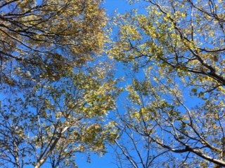 久しぶりにこんなに青い空を見ました。ようやく黄色くなって来た葉っぱが真っ青な空に映えてます。