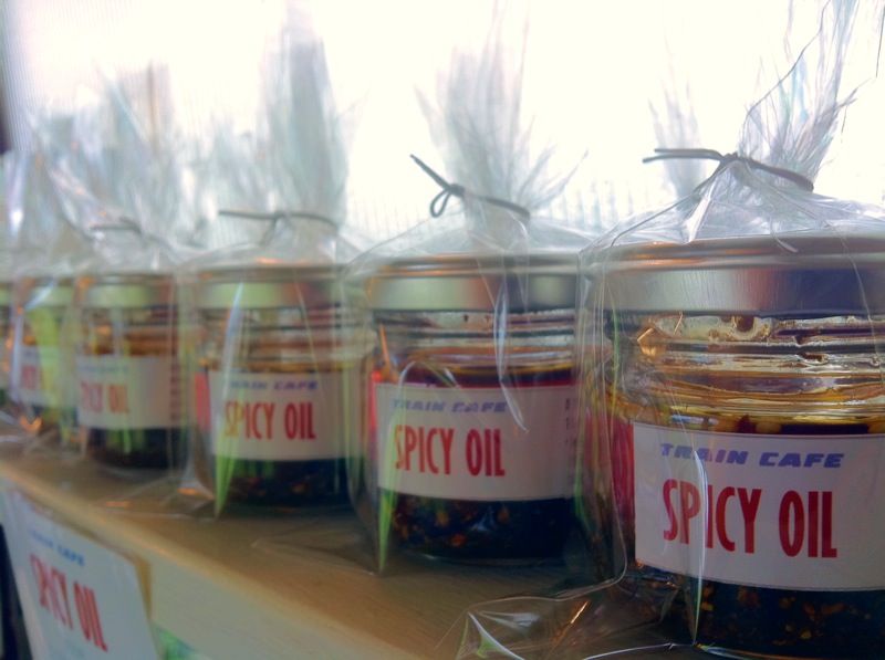 たまごかけご飯や冷や奴にかけるととっても美味しい「TRAIN CAFE SPICY OIL」、都合により、販売を修了させて頂きます。今、店頭に並んでいるものが最後になりますので、最後にお買い求めになりたいお客様、お早めにお越し下さいますようお願い致します。