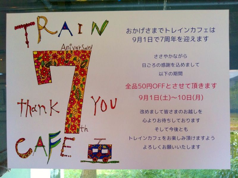 さて、トレインカフェはお蔭様で、9月1日(土)で7周年を迎えます。
