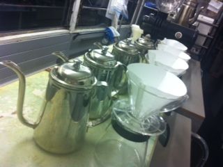 ●ドリップする器具はこちらで用意します…トレインカフェでいつも使用しているのと同じ器具で珈琲をドリップして頂きます。