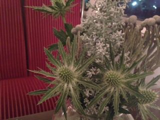 別名、スノーベリーと言われる白い実が可愛くて、小さく切ってテーブルに飾りました。