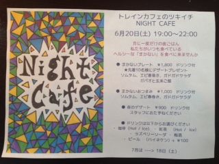 明日20日(土)19:00「NIGHT CAFE まかない夜ごはん」