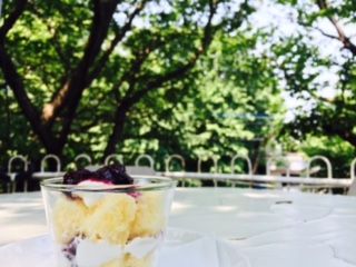 今日はツキイチのNIGHT CAFE!緑色着て来た方には、「イチゴとブルーベリーのトライフル」をプレゼントです!